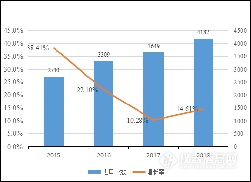 2015-2018年 質(zhì)譜聯(lián)用儀進(jìn)口量及增長趨勢