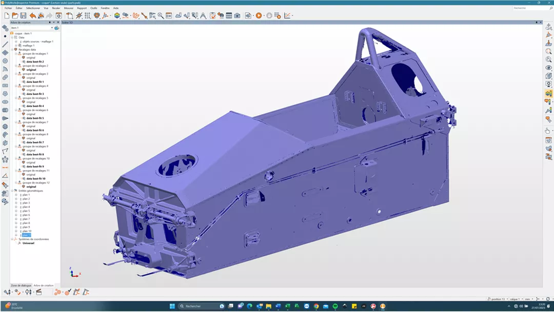 “如果表面上出現(xiàn)孔洞,借助多邊形掃描功能,您只需重新掃描孔洞即可。同時(shí),借助PolyWorks中的選擇工具,我們可以刪除支撐、“清理”像素等。我們以前使用的軟件解決方案的服務(wù)提供商總是向我們收取“清理”部件的費(fèi)用,然后再收取“清理”掃描的費(fèi)用。Laurent先生說(shuō)“過(guò)去需要半天甚至一整天來(lái)完成掃描的零件,現(xiàn)在只需半小時(shí)或最多一小時(shí)就能完成掃描”,他特別強(qiáng)調(diào)說(shuō),即使是鋁制底盤(pán),或者亮黑色、鍍鉻的零件也能輕松完成掃描。