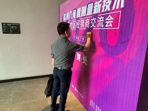上午9時(shí)許,會(huì)場已準(zhǔn)備就緒,各家經(jīng)銷商代表陸續(xù)到場簽到,并在會(huì)議簽名墻上簽名留念。