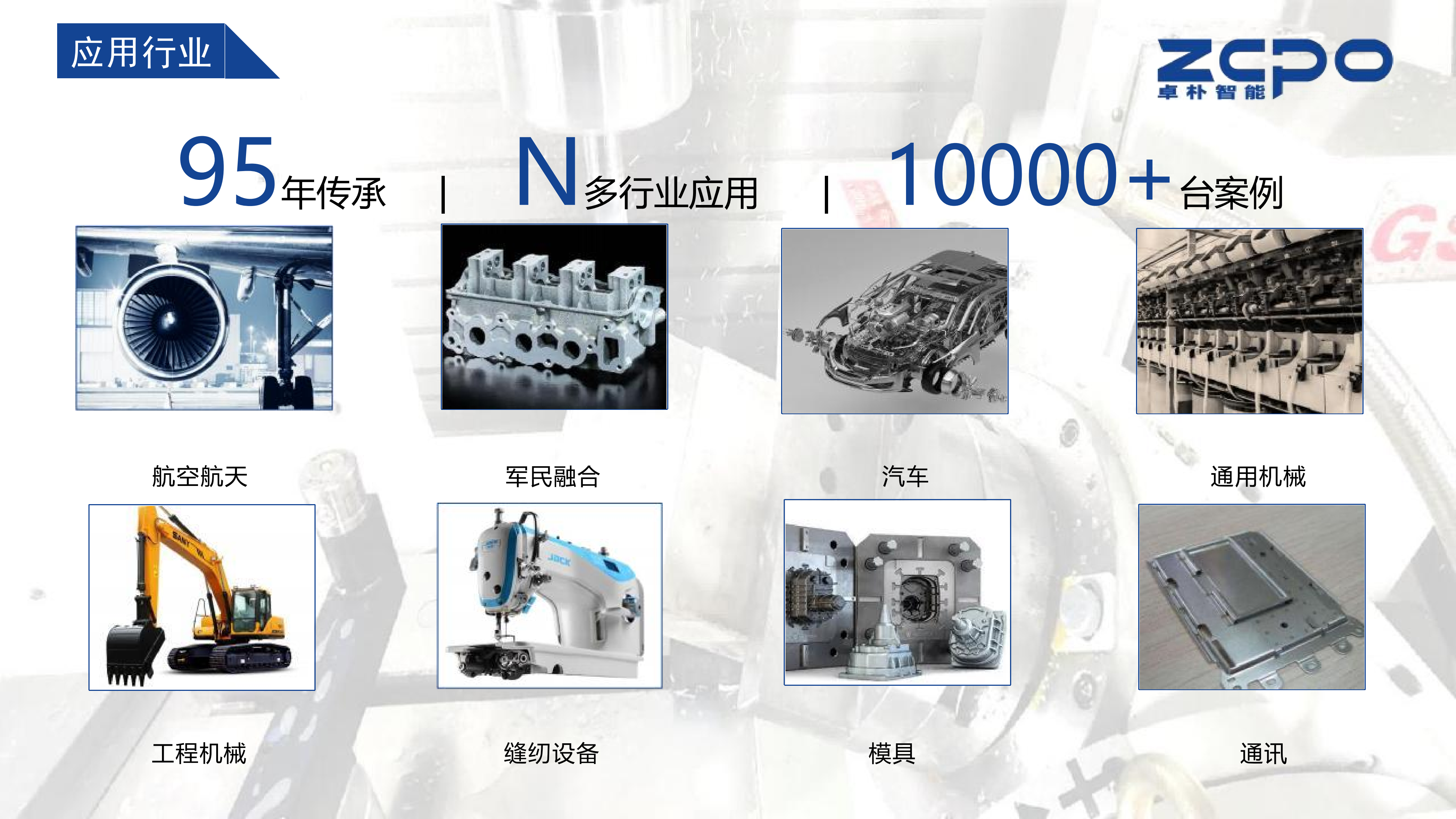 卓樸智能的主要產(chǎn)品包括立式、臥式和門式數(shù)控加工中心,以及普通、數(shù)控升降臺(tái)銑床和數(shù)控立式、臥式車床等五大系列,擁有覆蓋200多種規(guī)格型號(hào)的金屬切削加工產(chǎn)品。公司產(chǎn)品廣泛應(yīng)用于汽車、船舶、工程機(jī)械、新能源、模具、3C電子等領(lǐng)域,多年以來積累了近千家各行業(yè)優(yōu)質(zhì)客戶與大量的行業(yè)工件級(jí)解決方案。