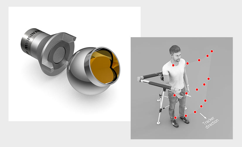 跟蹤儀跟隨測量臂圍繞被測物體的位置移動,記錄并合成參考坐標(biāo)。
